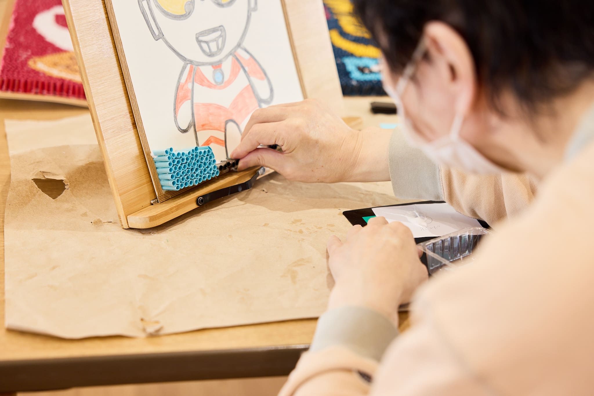 当院では、手工芸・創作・レクリエーション・軽体操・リラクゼーション・生活技能訓練等の作業活動を行っています。作業療法室や各病棟内を中心に個人活動や集団活動として実施しています。また、必要に応じて個別支援も実施しています。